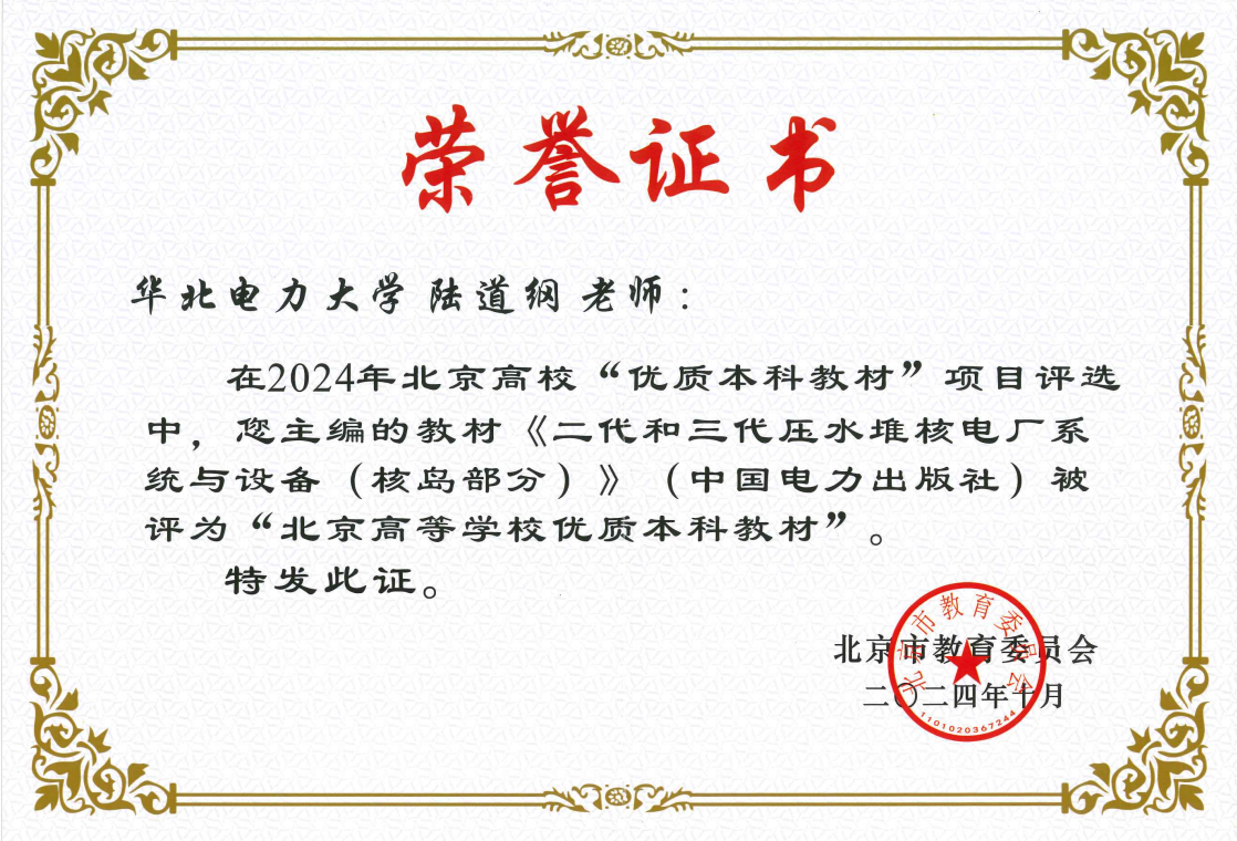 《二代和三代压水堆核电厂系统与设备(核岛部分)》是jdb电子官网核工程与核技术和辐射防护与核安全专业“核电厂系统与设备”课程的制定教材。该教材由jdb电子官网陆道纲教授主编,于2023年由中国电力出版社出版,获评“北京高等学校优质本科教材”和全国电力行业“十四五”规划教材。