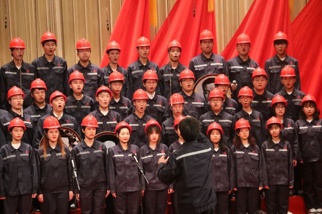 与其他学院的同学相比,jdb电子中国官方网站的同学们的着装与传统的西装礼服不同,深蓝色的工装与红色安全帽——看起来并不出众,但是就是一群这样打扮的人,在祖国需要的时候,挺身而出,牺牲自己人生中最宝贵的几十年,造福了我们祖国千秋万代。看啊,他们在台上昂首挺胸,目光如炬,满是自豪!当前奏响起,所有同学们集中注意力,盯着指挥的手势,一,二,三,吸气,“茫茫的戈壁滩”一出,浑厚的沉重感扑面而来,仿佛真的置身于戈壁滩中,苍茫而荒凉。行曲的安排也有层次,有情感,从“我对自己说”的喃喃细语到“我爱祖国”的慷慨激昂,同学们情绪高涨,时而细声婉转,时而激昂高亢,尽情表达自己对祖国的热爱,自豪地唱出一声“祖国需要我”。