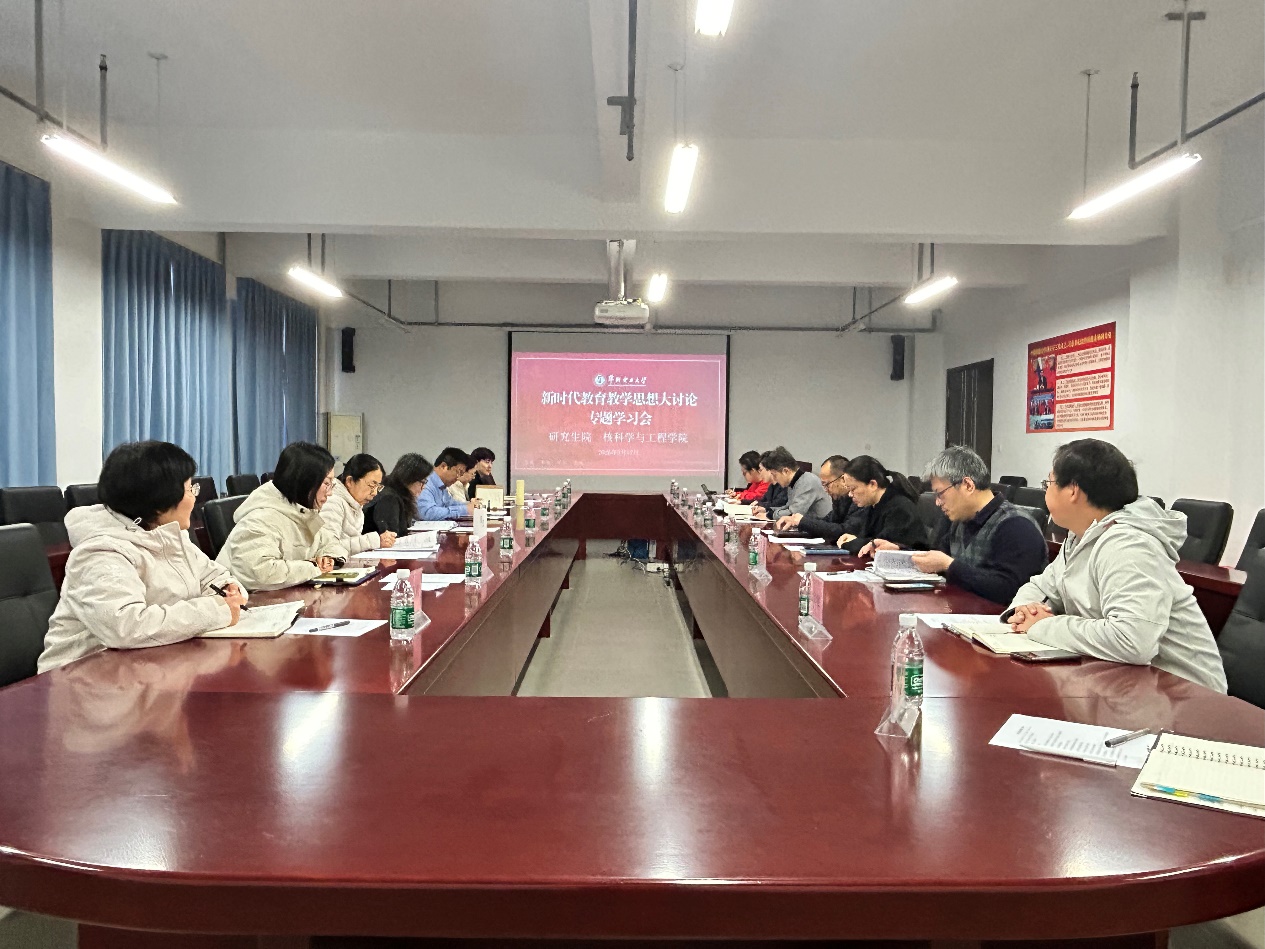 隋丹婷围绕学院研究生教育整体情况进行了系统介绍,涵盖学科布局、招生培养机制、导师队伍结构等方面。随后,与会师生聚焦调研重点,就教学成果奖培育、招生质量提升、培养方案优化、导师队伍建设、新型培养平台运行、人工智能赋能教学改革以及教育教学思想大讨论等议题展开深入研讨,进一步凝聚了推动研究生教育高质量发展的共识。