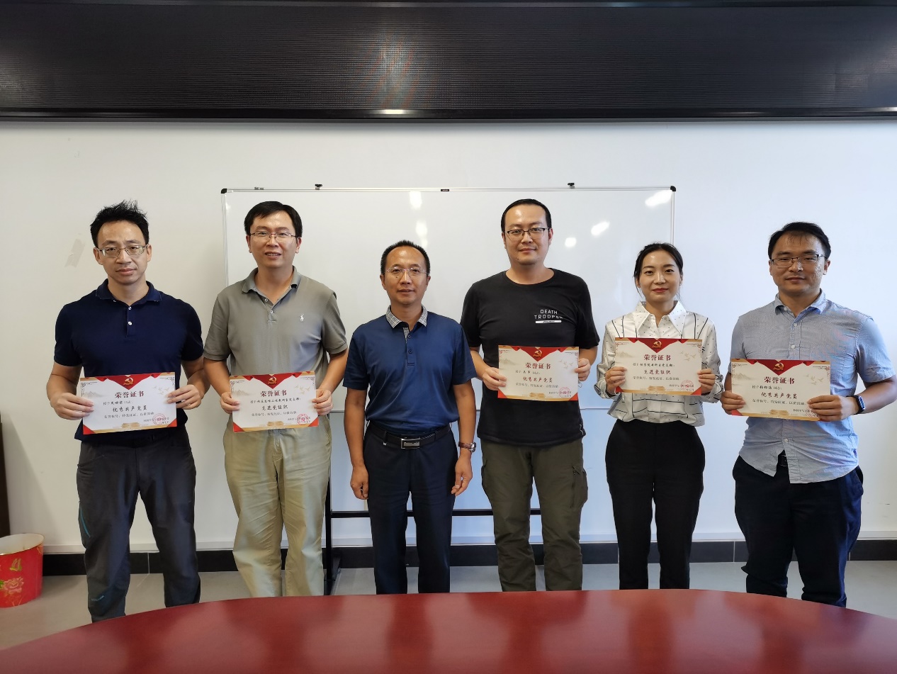 会议第二项,赵珥希副书记宣读jdb电子中国官方网站党委关于建党99周年先进集体和先进个人的表彰决定,李林书记为获奖团体代表和个人颁奖。