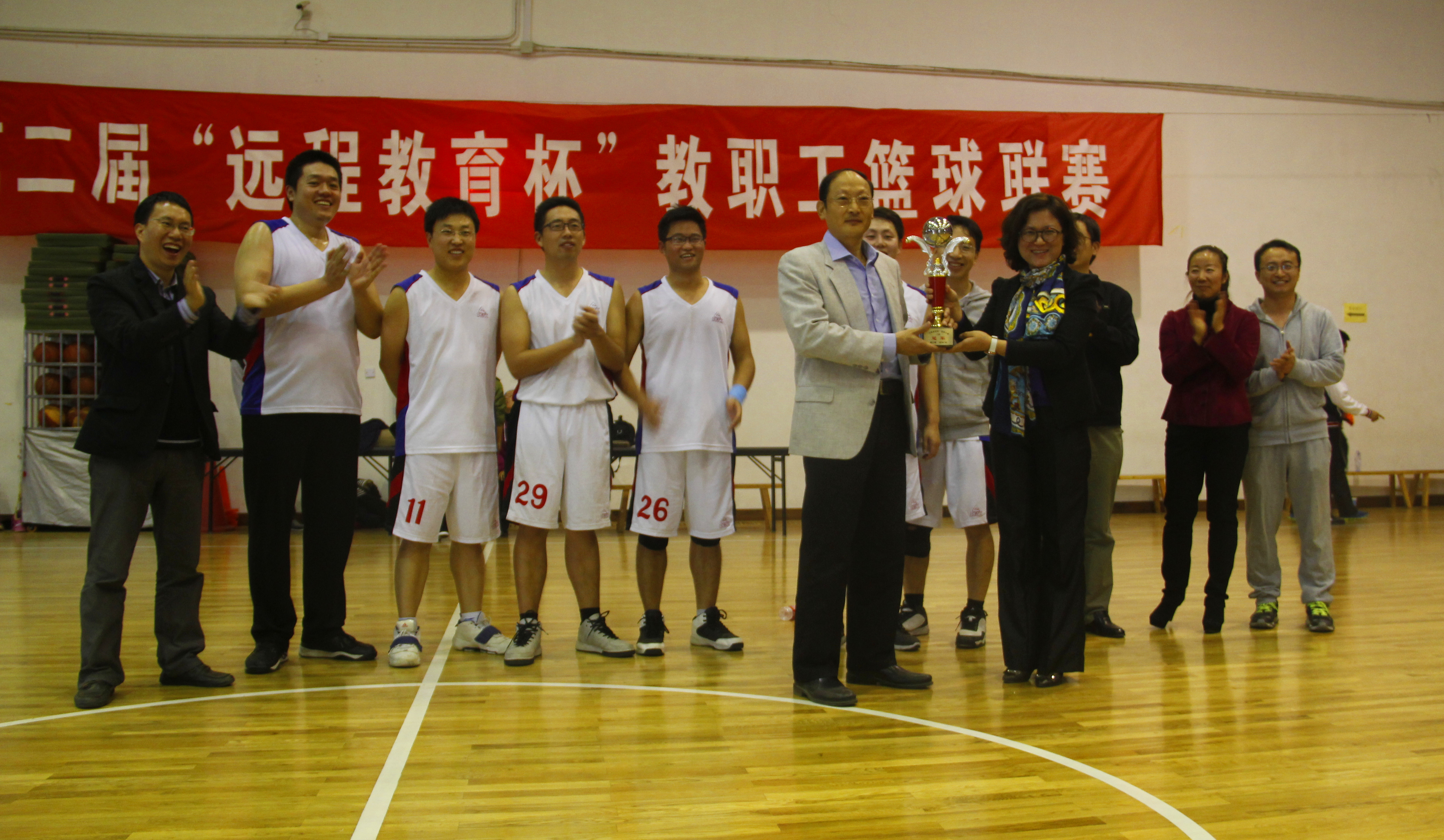 10月24日,jdb电子中国官方网站第二届“远程教育杯”教职工篮球联赛圆满落下帷幕,经过激烈争夺,最终jdb电子中国官方网站以34:13战胜图书馆网络与信息中心获得乙组冠军。jdb电子中国官方网站院长陆道纲、党委书记沈岚、党委副书记李辉、专业教师以及学生代表到场加油助威。