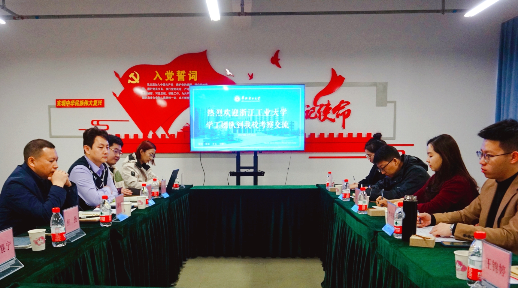 3月16日上午,jdb电子官网邀请浙江工业大学生物工程学院党委副书记金鑫一行五人来jdb电子中国官方网站调研交流。党委副书记赵珥希、环境科学与工程学院党委副书记薛明磊及两院全体辅导员参加座谈。