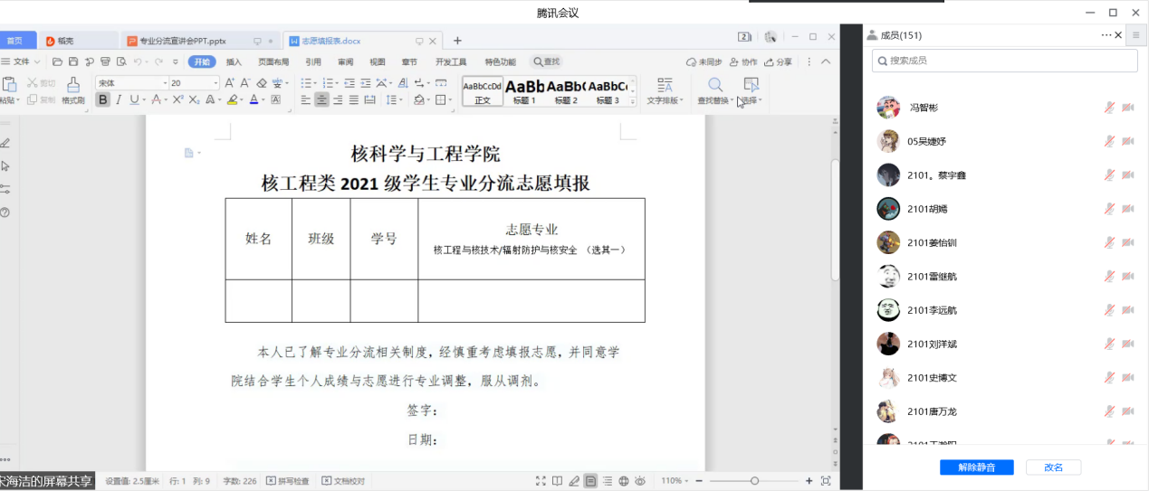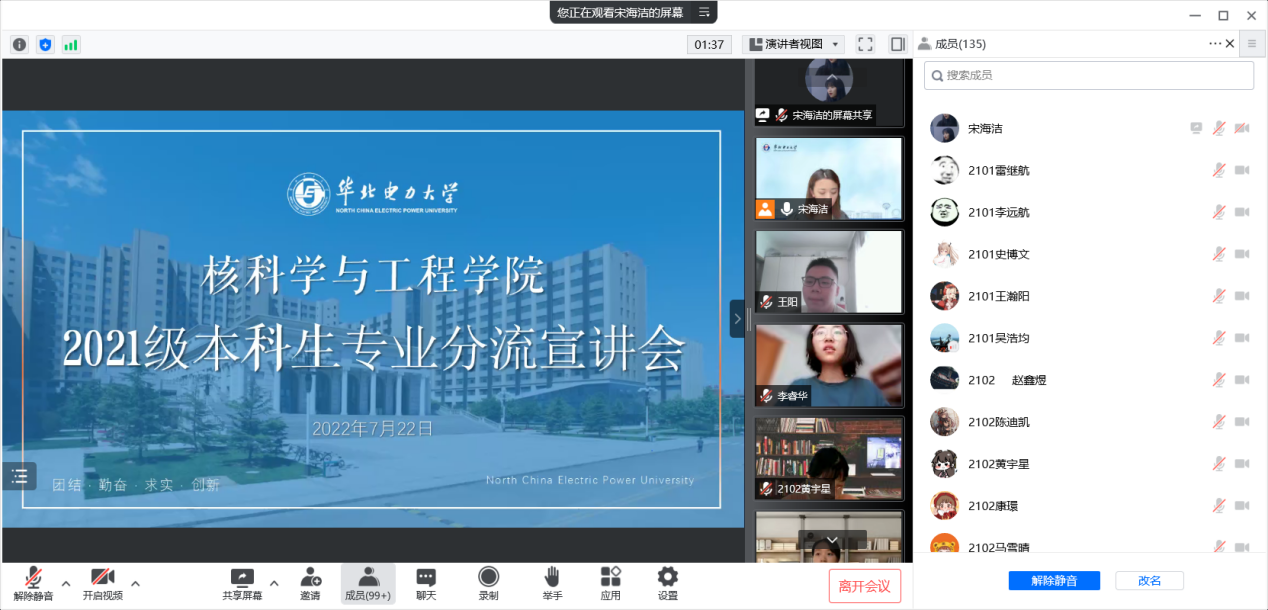 之后,宋海结老师对核工程类2021级学生专业分流志愿填报的注意事项进行细致讲解,提醒同学们要充分了解、仔细思考、认真填报。