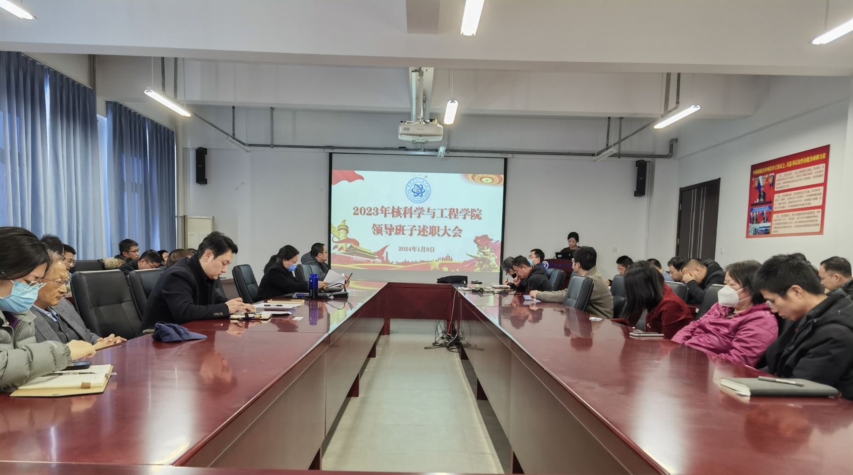 1月9日中午,jdb电子中国官方网站召开领导班子和处级干部考核述职大会,学院全体教职工参加会议。会议由学院党委书记李林主持。