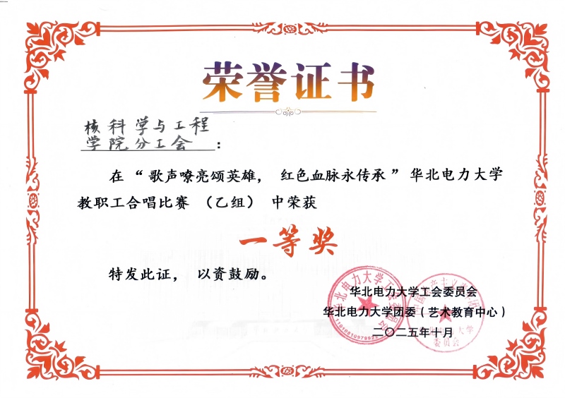 10月21日下午,jdb电子中国官方网站“歌声嘹亮颂英雄,红色血脉永传承”教职工合唱比赛落幕,核学院分工会凭借原创歌曲《一生核求》,荣获教职工合唱比赛乙组一等奖。此次获奖不仅是对学院艺术表现力的高度认可,更是对核工业精神的一次深刻诠释与成功传承。