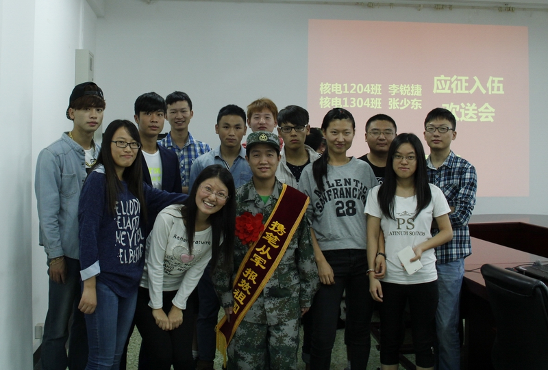核电1204、核电1304班参加欢送会的同学纷纷回忆与两位同学的大学时光,送给他们寄语和建议。李锐捷和张少东两位同学在欢送会上感谢大学期间与老师和同学大学的相处,必将牢记责任和使命,刻苦训练,把自己融入军营,争当优秀士兵,不辜负大家的期望和关心。