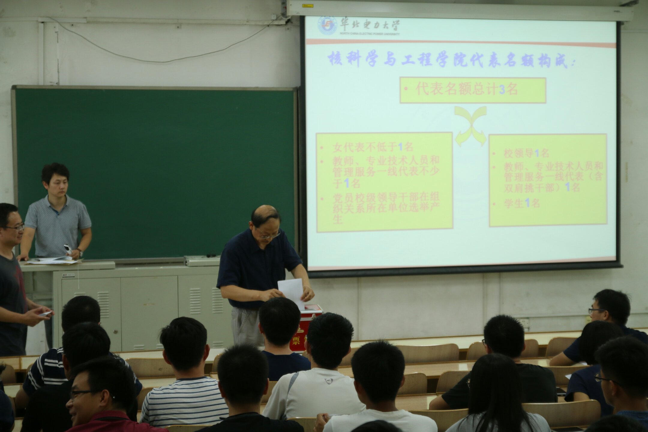 为了迎接党的十九大,选举出席中国共产党jdb电子中国官方网站第二次党员代表大会代表,2017年9月8号中午12:50,jdb电子中国官方网站于教三C201召开党员大会,大会由jdb电子中国官方网站党委副书记李辉主持,核学院全体师生党员参会。