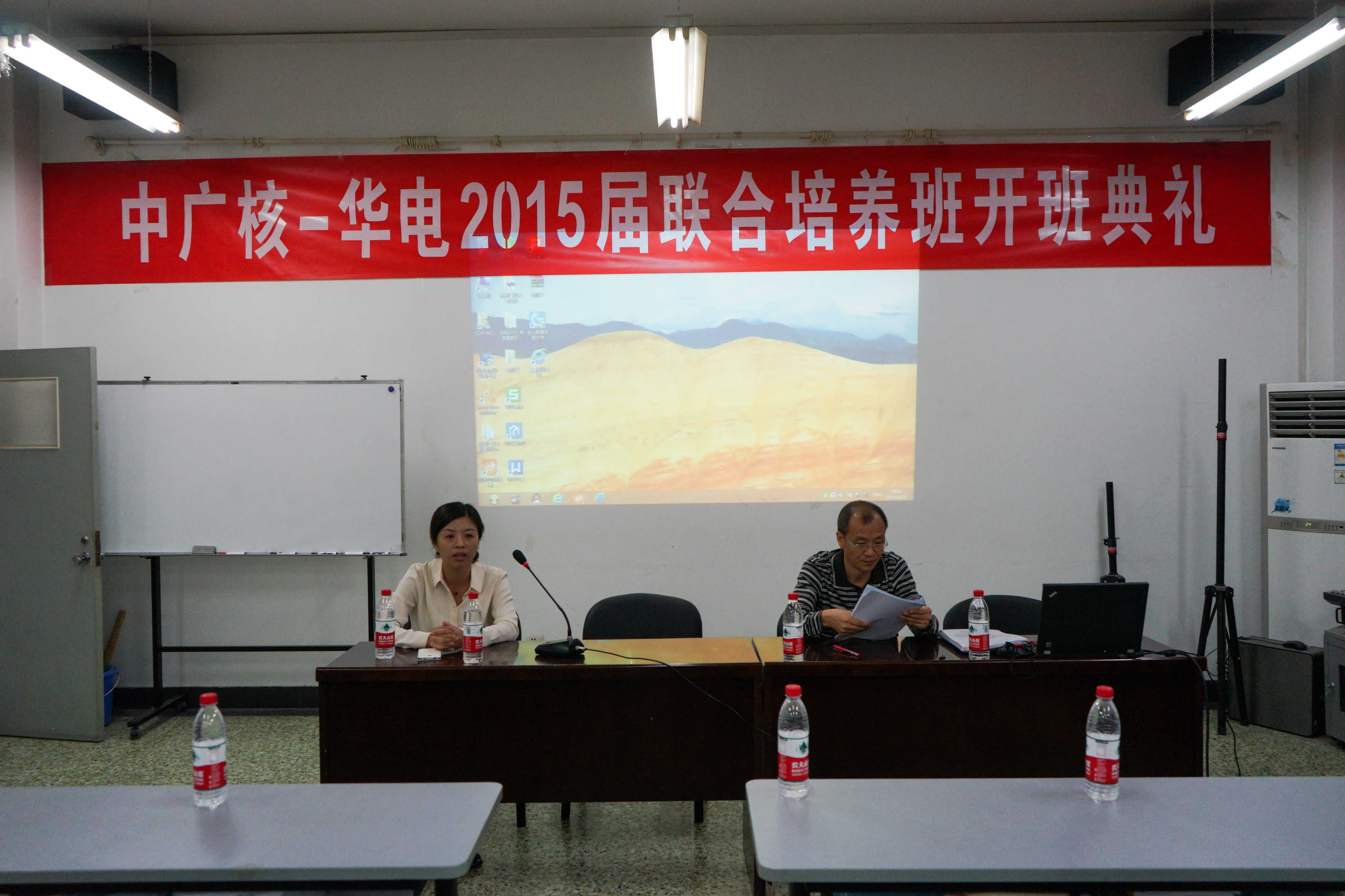 2014年9月22日9点,jdb电子中国官方网站举行2015届jdb电子中国官方网站——中国广核集团联合培养班开班典礼。中广核核电运营公司培训中心苏林森老师与核学院副院长刘洋参会,典礼由学院团总支书记赵珥希老师主持。