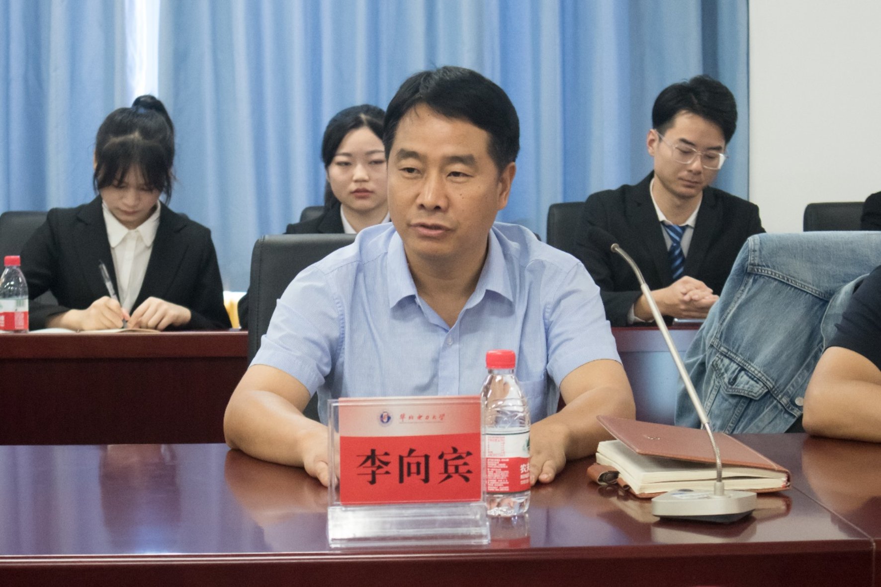 最后,学员代表苏云帆向企业与学校汇报了暑期以来联培班的课程进展与学习情况,代表联培班全体同学向企业、学校、授课教师表示了深深的感谢。他阐述了自身对核电事业的看法,明确了联培班的定位与目标。作为保定校区学员,他对学校、企业以及学院为他们到北京校区学习提供的诸多便利表示感谢,希望各位同学能作为学校和企业之间的纽带,加强学校与企业之间的合作。