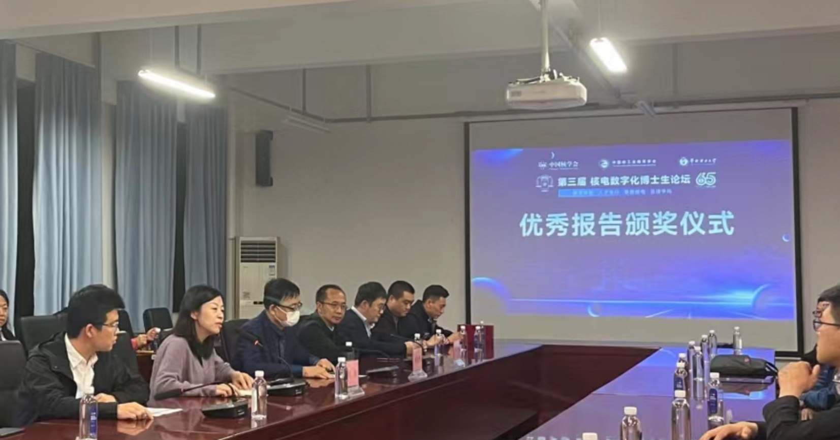 经评委评选,李铸伦等26名博士生获得优秀报告奖,其中jdb电子官网8人获奖。jdb电子中国官方网站举行了优秀报告颁奖仪式。中国核学会数字化与系统工程分会秘书长师庆维、jdb电子中国官方网站党委书记李林、jdb电子中国官方网站院长刘洋出席颁奖仪式并致辞。