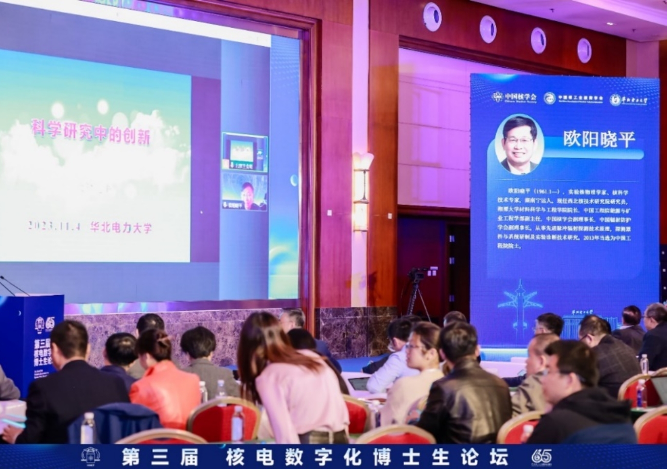 叶奇蓁院士做《核电数字化与人工智能》主旨报告。欧阳晓平院士做《科学研究中的创新》主旨报告。