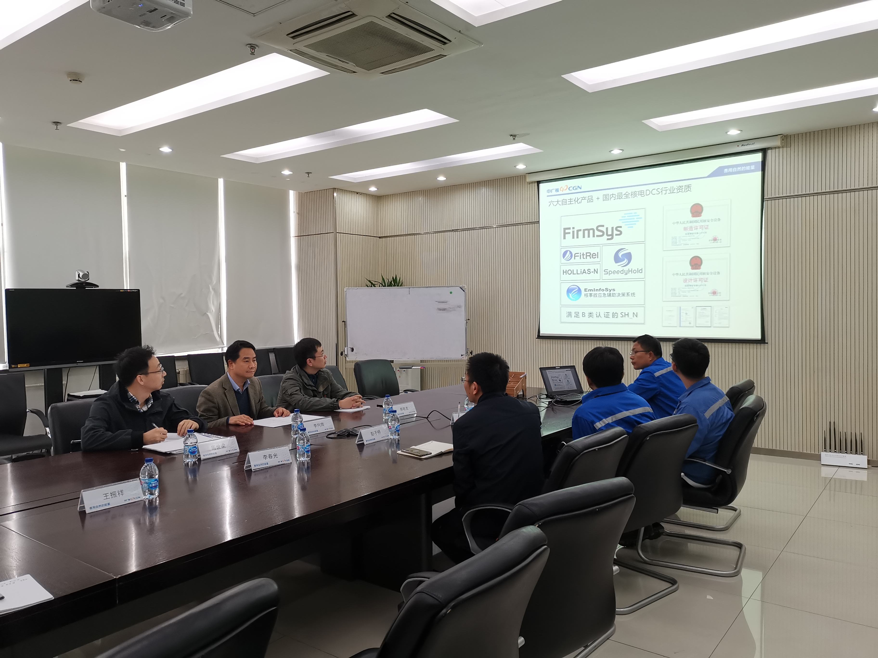 会议由广利核李春光主持。首先最小DCS系统项目组长彭子桥介绍了广利核公司基本情况和产品业绩等;随后李春光经理对本项目的完成情况进行了汇报。最后李向宾副院长介绍了一回路实物模拟系统总体建设进展和对控制系统和主控室的主要设计要求。