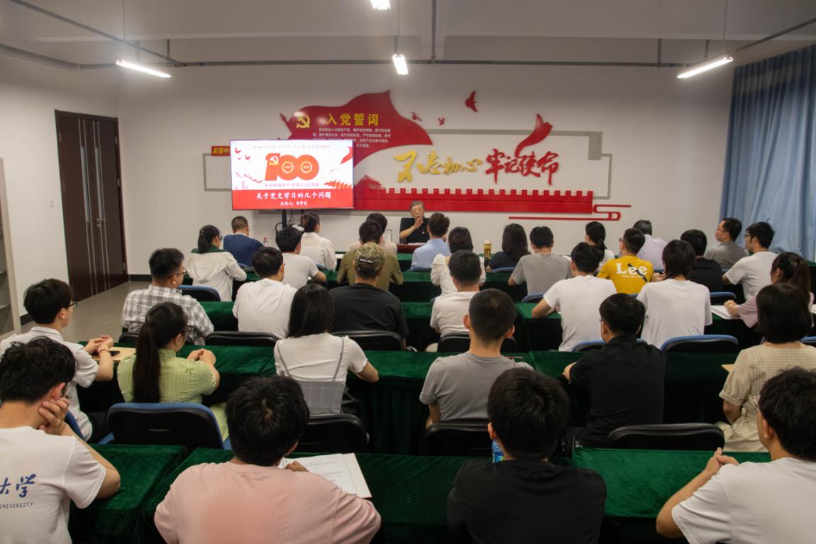 6月30日,值此建党一百周年前夕,jdb电子中国官方网站举行党史学习教育专题报告,邀请原校党委副书记朱常宝老师向同志们讲授题为“关于党史学习的几个问题”的主题党课,学院党委书记李林、副书记赵珥希、副院长刘洋、刘芳和学院全体师生党员参加此次报告,报告由李林主持。