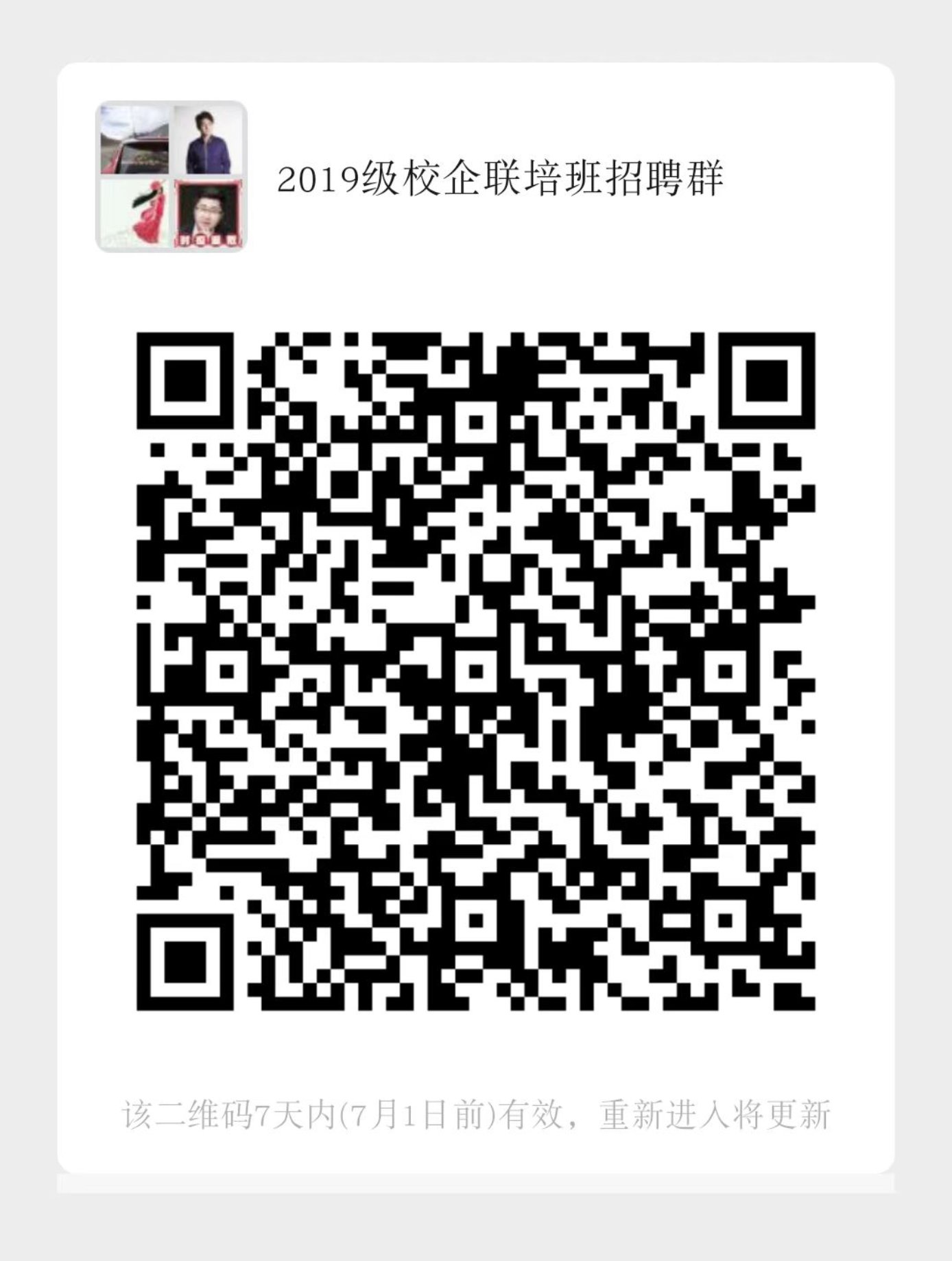 为做好2022年校企联培班招聘工作,学院设立“2019级校企联培班招聘群”,请有意愿加入校企联培班的(包括中核、中广核、华能)同学扫码入群。