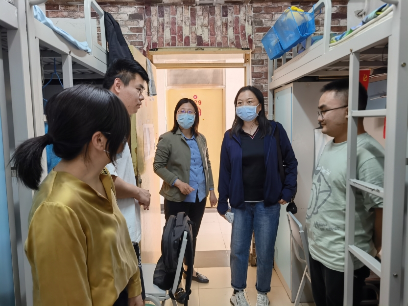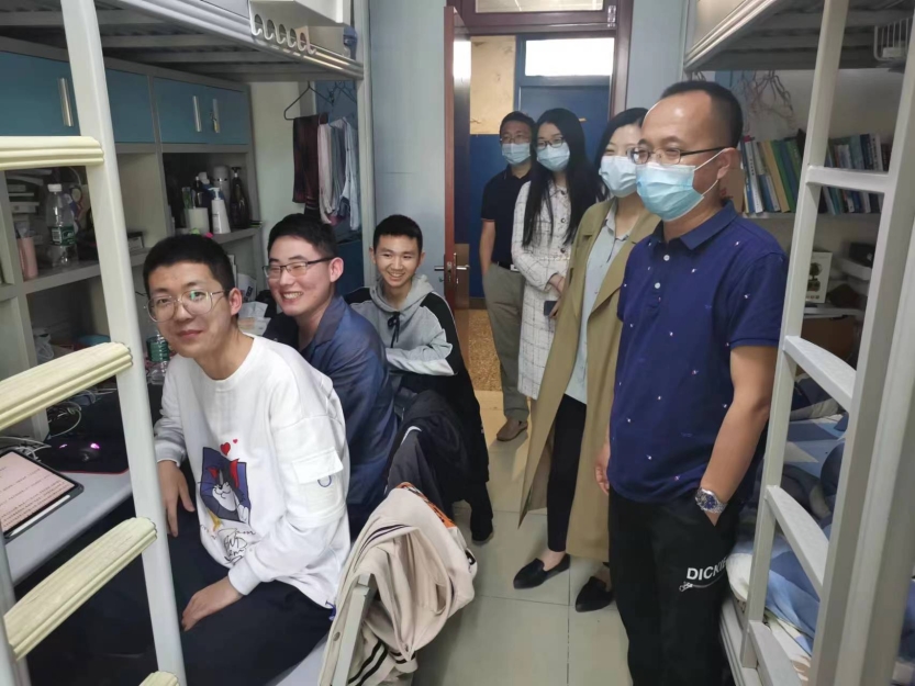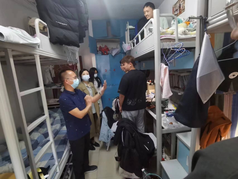 按照五一假期学生非必要不离校的疫情防控要求,为做好疫情防控及安全稳定,切实关心关爱学生,学院决定每天安排院领导带班值班的同时,带领辅导员、班主任走进学生宿舍,带去节日问候,倡导做好宿舍卫生,积极参加户外运动,提高个人免疫能力,了解疫情常态化下学生们的思想动态。