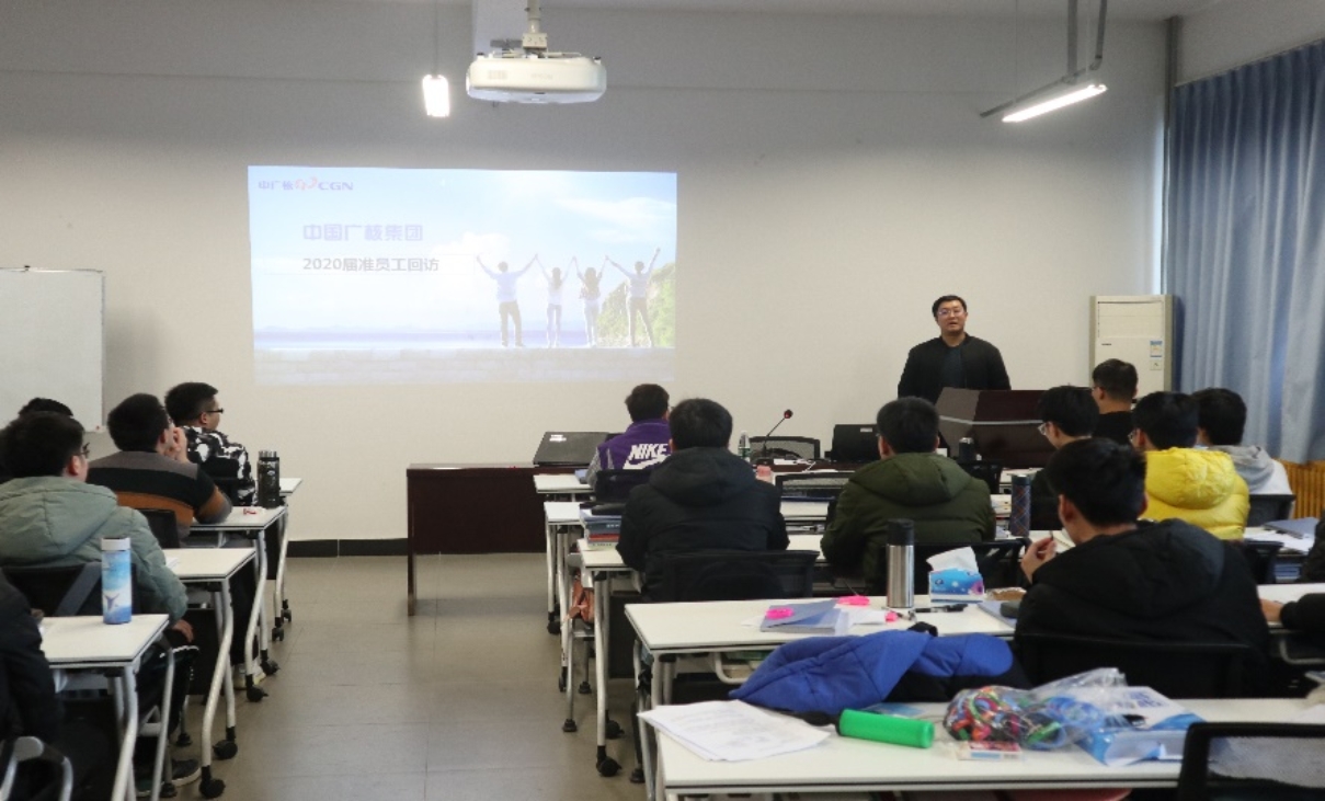 12月19日下午两点,中广核校园招聘办公室张书杰、赵竟臣老师来jdb电子官网对2020届中广核北京&保定地区准员工进行回访,活动在联培班教室主楼G309举行。